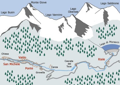 Il percorso di San Michele, si sviluppa a lato del fiume Toce, dalla località Fondovalle fino a Ponte per complessivi 12 km.